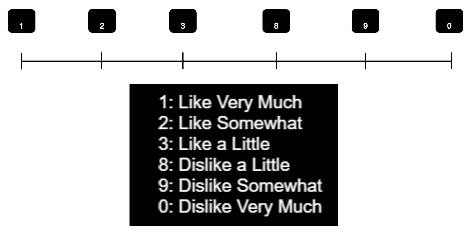 Fig. 2: The 6-option Likert Rating Scale and associated keystrokes to select